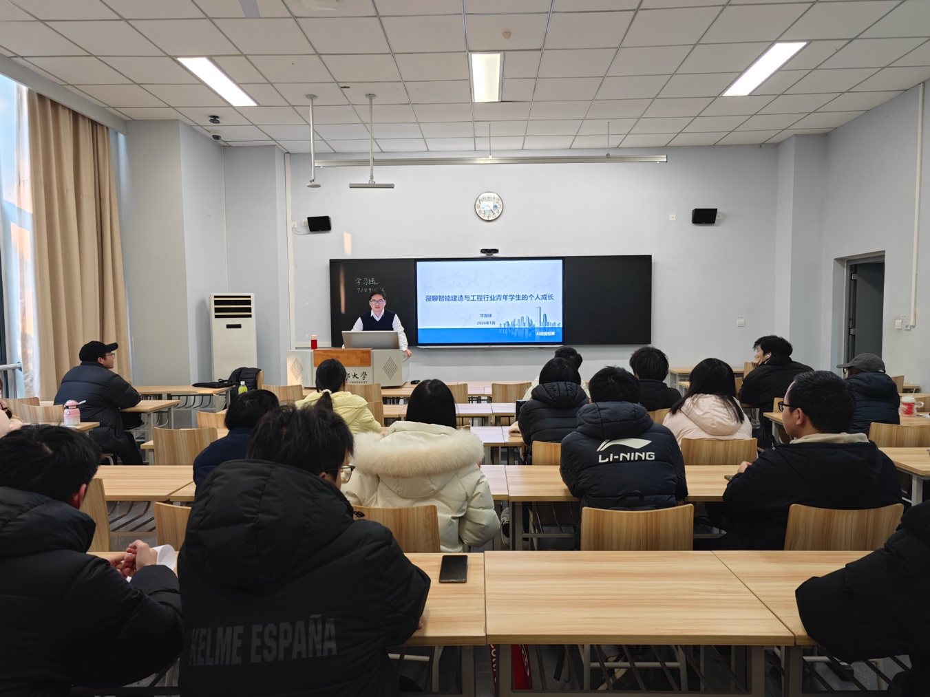 2026年1月10日,成都大学智能建造及土木工程新材料现代产业学院《智能建造导论》课程邀请了来自四川芯烨智创机器人科技有限公司的高级工程师牛智祥作专题授课,题为“漫聊智能建造与工程行业青年学生的个人成长”。