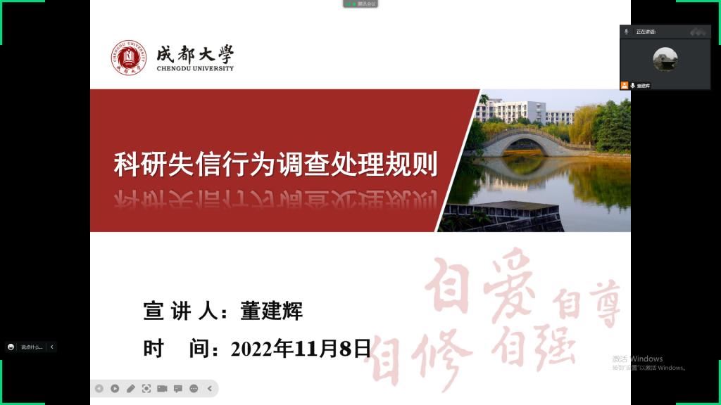 为贯彻实施《中华人民共和国科学技术进步法》等法律法规,进一步规范科研行为,杜绝科研失信行为的出现。11月8日下午,学院线上召开了《科研失信行为调查处理规则》专题学习宣讲会,倡导全体教科研人员在工作中坚守科研诚信。学院全体科研人员参加本次学习,副院长兼纪委书记董建辉主持此次宣讲会。