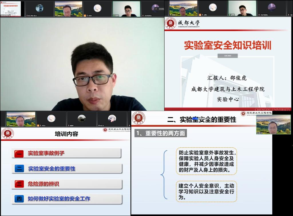 实验室是高校进行人才培养和科学研究的主要场所之一,实验室安全是实验室各项工作正常进行的基本保证。学院为帮助同学们从一开始就树立好牢固的实验室安全意识,打造实验室安全环境。2022年10月22日,学院董建辉副院长、实验中心主任邵俊虎博士为22级全体新生进行了线上实验室安全教育,实验室全体老师及2022级全体新生参加了本次培训。