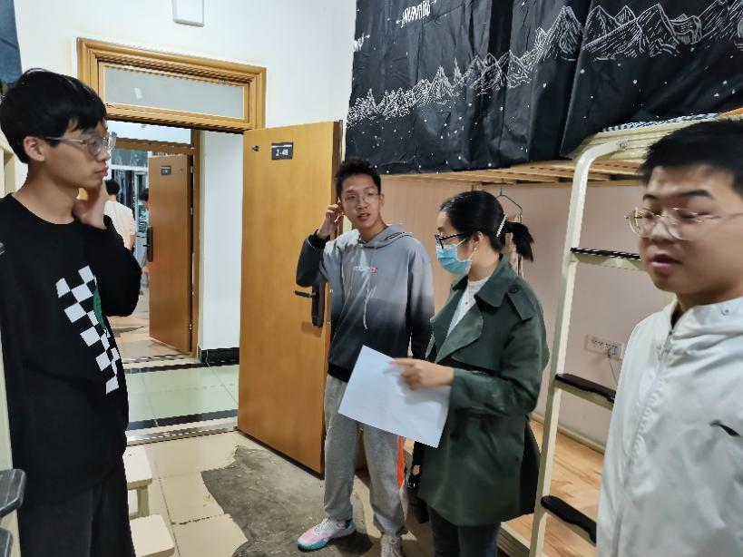 在走访的过程中,两位老师新切地与同学们打招呼,并询问同学们入学以来衣食住行情况以及是否适应大学生活,并鼓励同学们继续做好疫情防护。同学们纷纷表示目前正在积极地适应新的学习、生活环境,积极配合各项防疫措施。杨何老师在与同学们交谈中提到:“进入大学后,大家要尽快地适应大学生活,转变身份,同学之间要相互帮助,期间如果遇到困难应积极向班主任、老师们寻求帮助。同时,大学期间要养成良好的生活习惯与学习习惯,以学习为第一要务,做好目标规划并积极努力去实现。”蒲云辉老师希望同学们:“在大学期间,要认真学好知识,砥砺品行,志存高远,认真规划大学生活,争取在大学四年获得大的成长与进步。