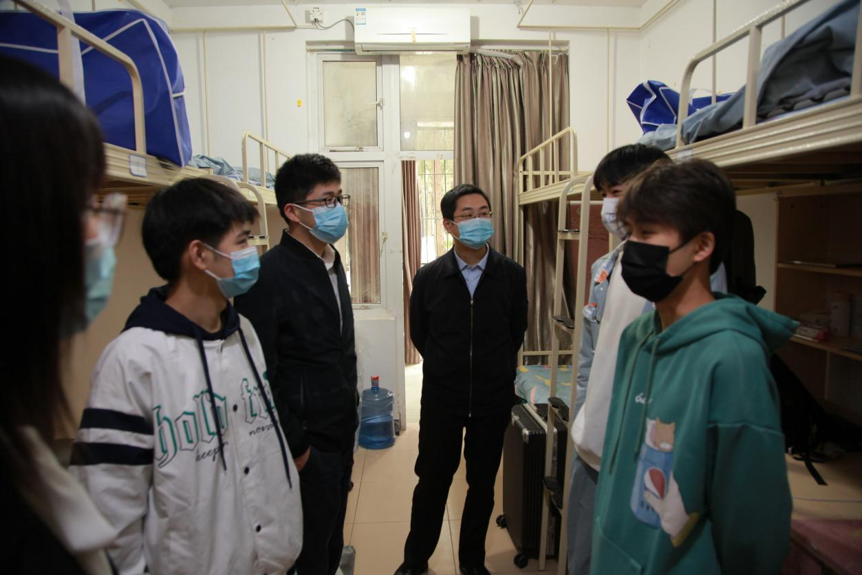 新生报到点,看望前来报到的新生,慰问在报到点忙碌的志愿者,检查指导迎新工作。他们对各部门、单位的迎新工作给予充分肯定并向迎新工作者的辛勤付出表示感谢,叮嘱相关部门和工作人员,强化迎新服务工作的精准性、细致性。