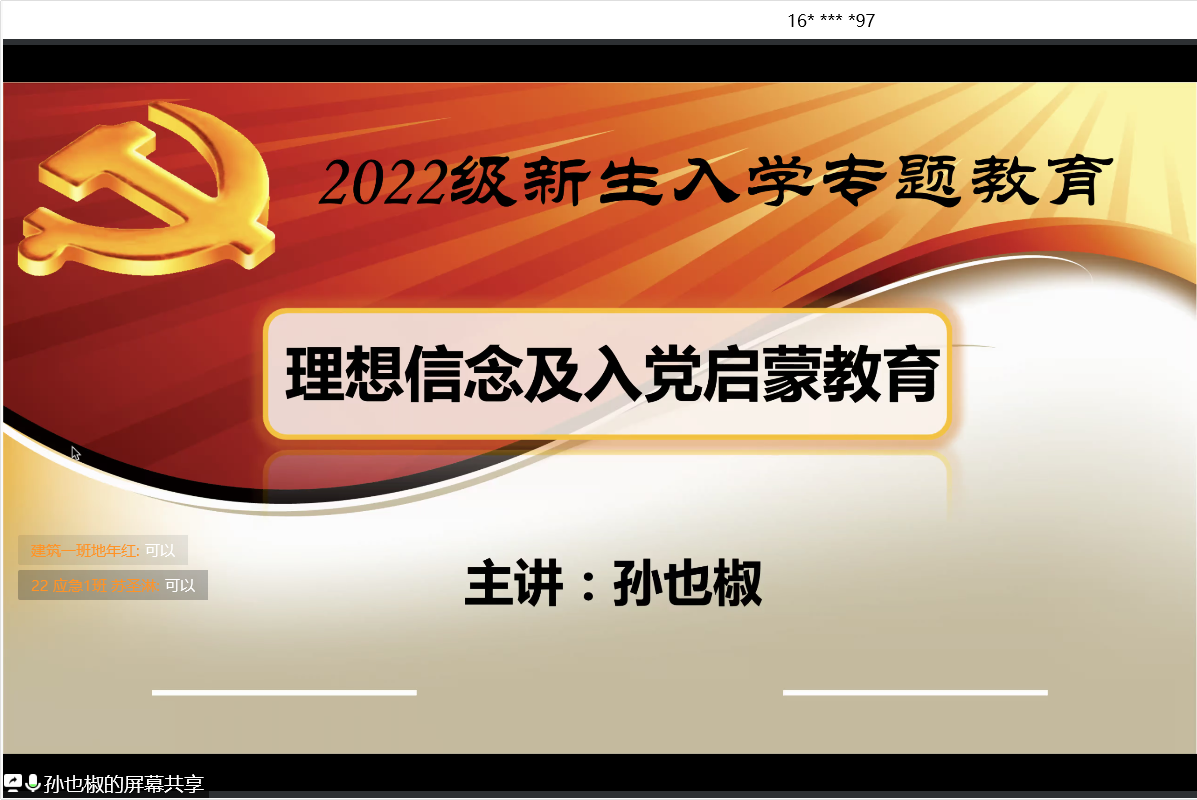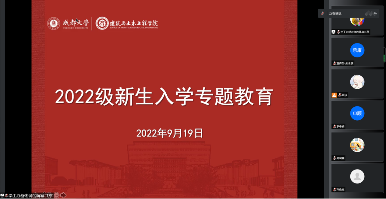 2022级新生入学专题教育在腾讯会议及微信视频号同步开展。