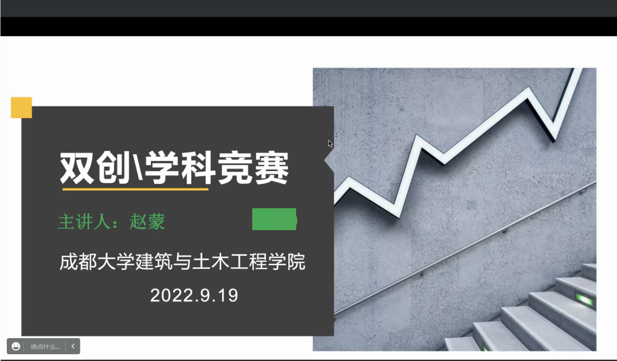 随后,赵蒙老师给各位新生介绍了创新创业与学科竞赛相关内容。系统解释了双创是什么、为什么参加双创以及如何践行双创等系列问题,并介绍了学院在双创领域取得的成绩。