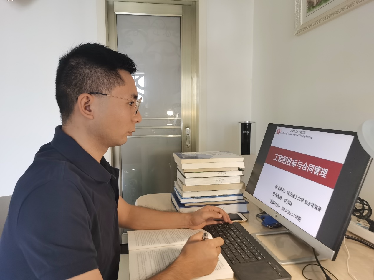 环境工程系教师欧洋铭利用腾讯会议平台向2020级环境工程专业同学教授《工程招投标与合同管理》这门课。课前半小时,欧老师便调试好网络设备并在学习通中发布课程学习任务、要求、签到等信息,让学生了解本次课程的学习目标和重难点。课程教学中,为了使枯燥的概念和理论生动化,老师列举了大量实际案例,采用小组研讨方式来调动同学们的课堂积极性和学习兴趣。为保证同学们在网络课堂上专心听讲,欧洋铭老师一方面号召学生干部和学生党员发挥先锋模范作用积极组织和督促同学们,另一方面,利用课间休息时间与个别同学线上语音交流,了解他们的疫情封控生活状态、沟通防疫知识等,调节同学们的心理情绪,保证课堂教学积极高效。