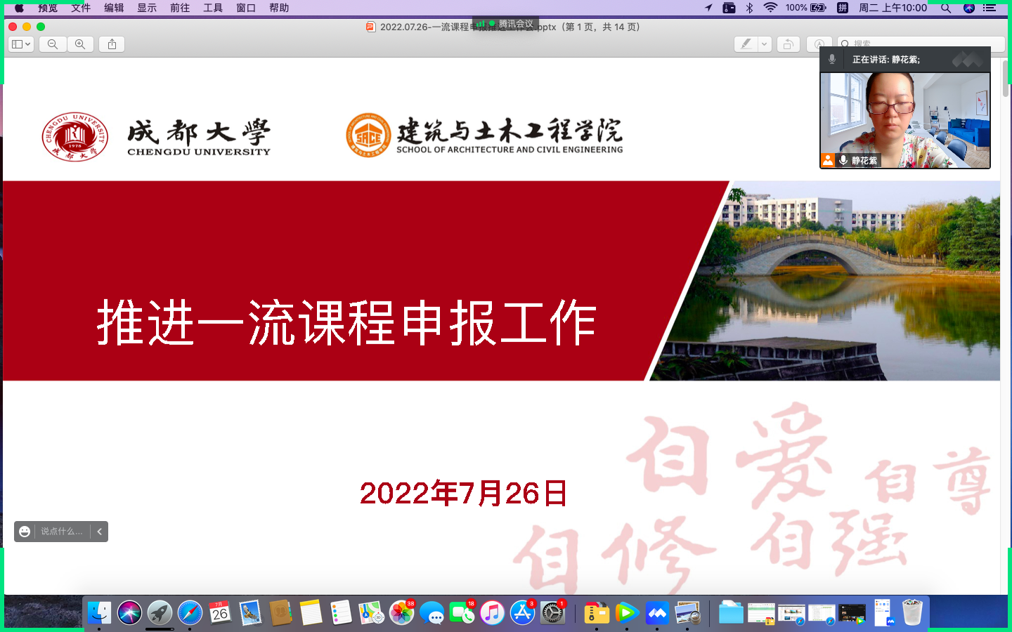 7月26日上午10:00点,学院以线上会议方式召开一流课程建设申报工作推进会。院长吴启红出席会议,副院长王静、副院长董建辉、教务办主任吴懿、各系主任和副系主任、教务办工作人员参加会议。会议由副院长王静主持。