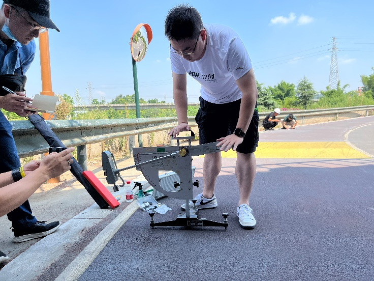 道桥科研团队采用专用设备针对试验段4种不同路面结构的构造深度、抗滑性能及平整度进行检测,根据自行车专用道交通特性,提出了专业建议。