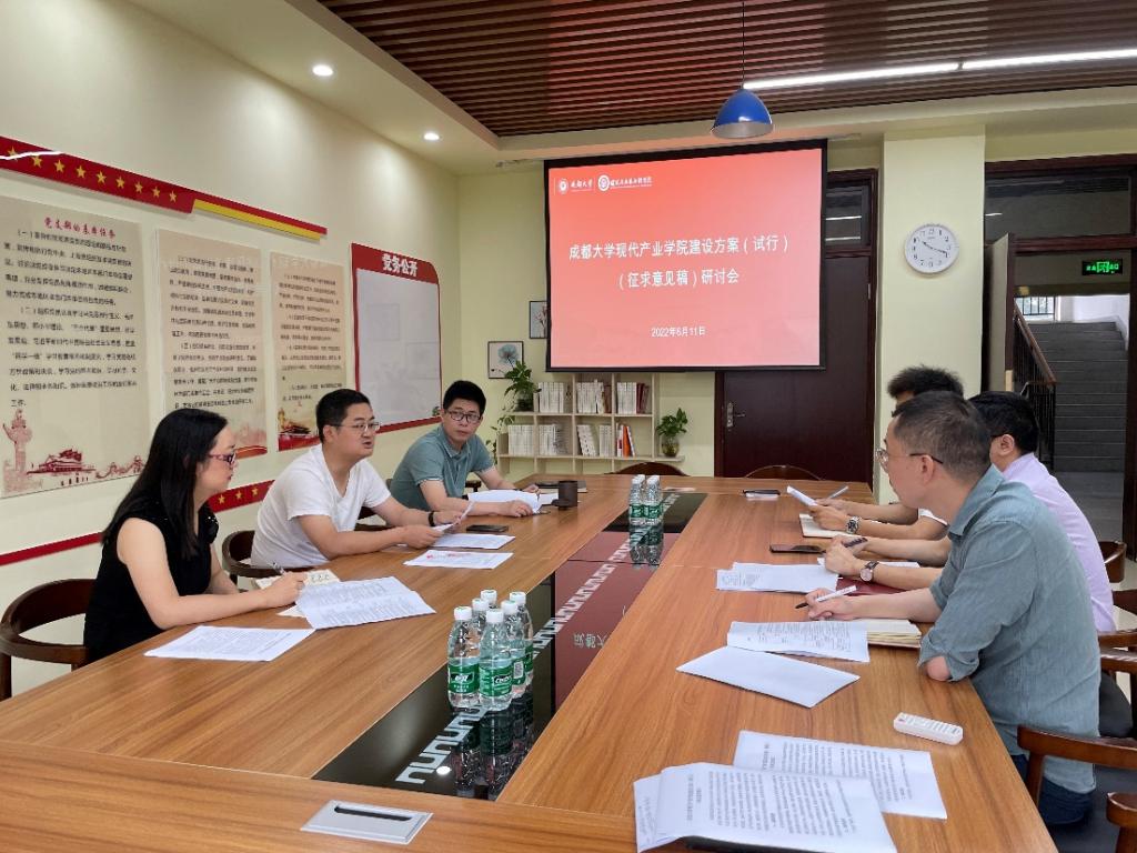 学院副院长王静带领各相关专业负责人逐条解读了《成都大学现代产业学院建设方案(试行)征求意见稿》。随后,与会人员针对意见稿中的内容进行了讨论,还针对今后现代产业学院人才培养方案制定、人才培养模式、课程设置、政企校合作等问题进行了交流研讨。本次会议的召开明确了现代产业学院下一阶段的工作重点和建设任务,进一步推动人才培养供给侧与产业需求侧紧密对接工作落实、落地、落细。