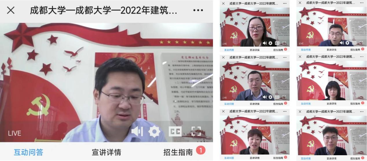 直播开始,学院院长吴启红对学院的基本情况、学科特点、专业构成、办学实力、招生及学生就业等内容做了全方位的介绍,土木系杨华平主任、环工系曾丽主任、建筑系张妍主任、测绘系姚远主任以及工管系杨何主任,分别对各系的专业特色、师资构成、学生培养体系、毕业就业情况等做了详细介绍。