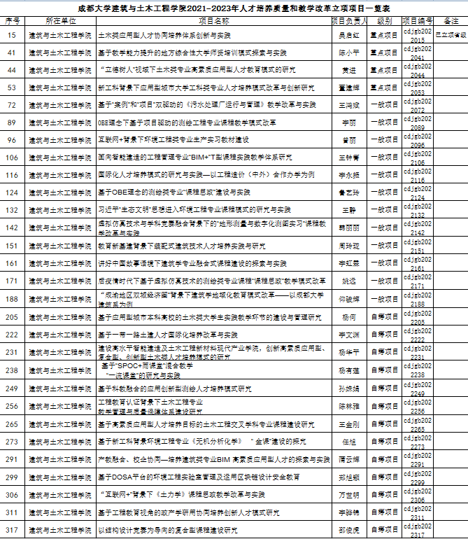 根据《关于申报2021年校级人才培养质量和教学改革项目暨推荐四川省2021-2023年高等教育人才培养质量和教学改革项目的通知》(成大教〔2021〕122号)文件精神,经个人申报、学院推荐、专家评审、校内公示、学校审定等程序,优胜客