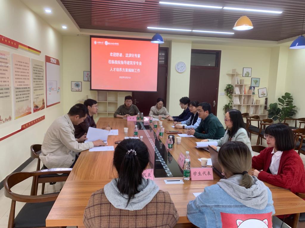 院长、四川省普通本科高等学校建筑类专业教学指导委员会副主任委员舒波教授,西南交通大学设计研究院有限公司总建筑师、国家一级注册建筑师沈洪钊教授。会议由学院副院长王静主持。