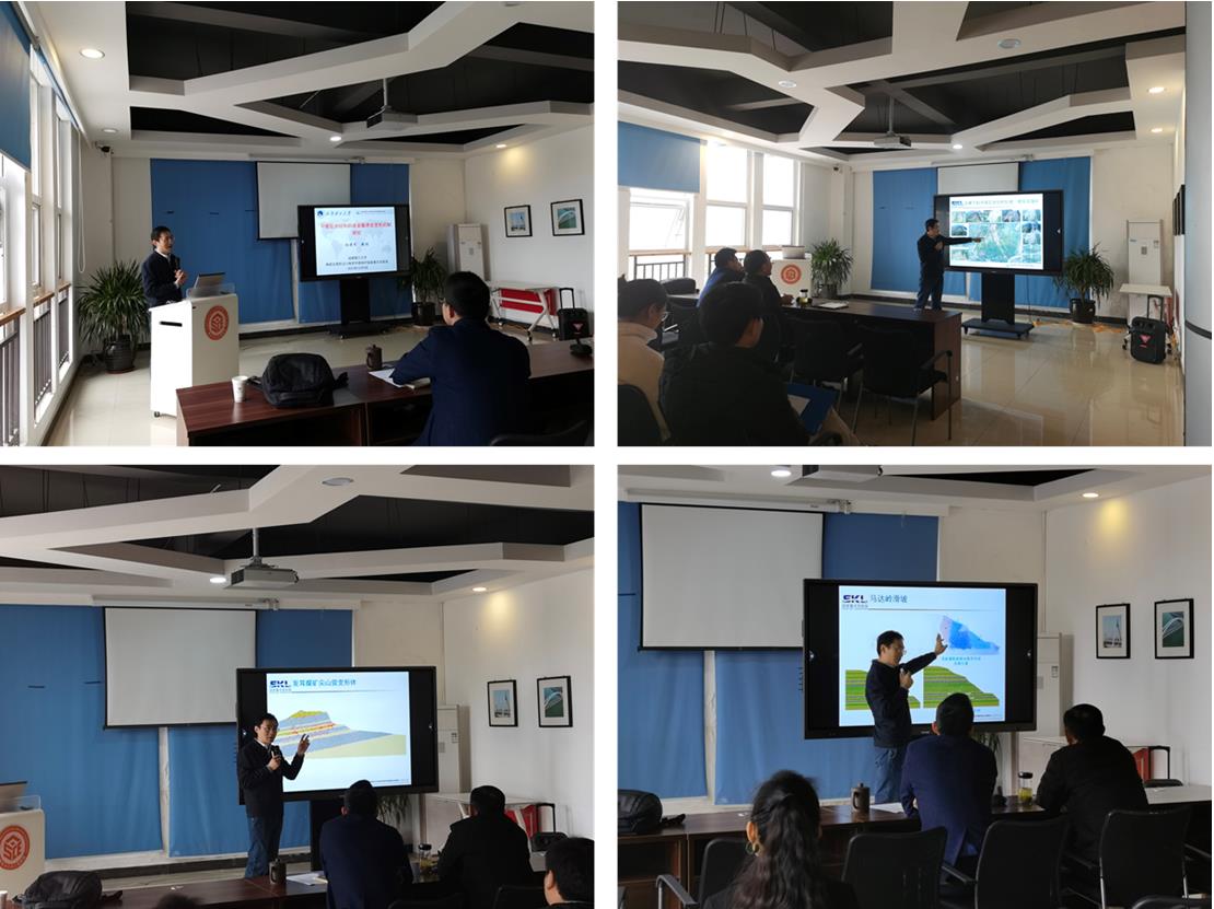 随后,赵教授作了“平缓层状结构采动滑坡变形破坏机制研究”的专题学术报告。报告针对煤矿采空区上覆岩体变形引起山体滑坡这一典型地质灾害科学难题,以近年来贵州省典型采煤诱发崩滑灾害事件为引,从工程实例、模型构建、模拟分析、模式凝练、防治建议等五个方面进行了系统全面地介绍。报告依托工程实践而深入探讨,所获结论对于矿山崩滑灾害的防治具积极的指导作用。报告最后,赵教授分享自身经历,对同学们提出了“坚持让平凡变成伟大”的寄语。