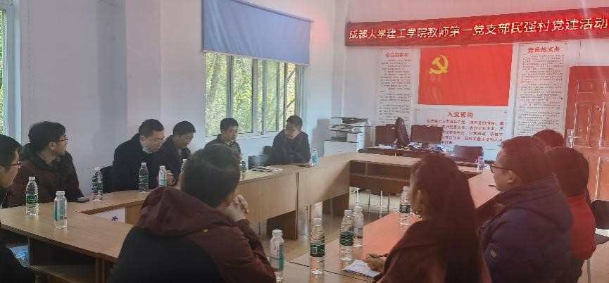 与民强村的结缘历程,双方在结对共建活动中建立了深厚的友谊,取得了一系列可喜的成果。董院长号召全体党员教师们在工作中讲担当,勇作为,不忘初心,秉承廉洁廉政,把为人民服务放在第一位。教工第一党支部陈林雅博士与民强村党总支就如何利用土木系专业优势,在民强村乡村振兴工作中就自然灾害风险普查、农房抗震加固、乡村旅游等方面进行了详细交流。