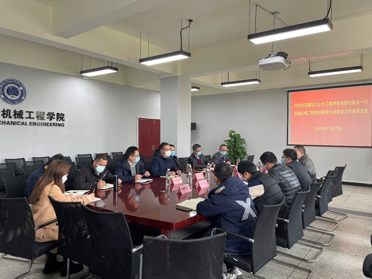 11月17日,学院院长吴启红带领院硕士点建设小组赴学校机械工程学院进行新增硕士点建设工作学习交流。机械工程学院书记王仕平、院长冯威、副院长唐茂、任振兴等出席了交流会。