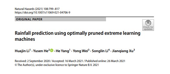 土木工程系专任教师李骅锦博士以第一作者、成都大学为第一单位在自然灾害领域国际期刊《Natural Hazards》(中科院三区,IF=3.102)上发表了题为“Rainfall prediction using optimally pruned extreme learning machines”的研究成果。