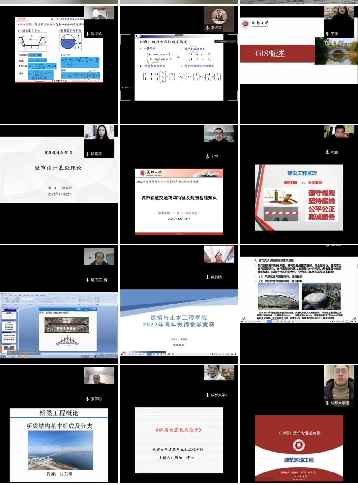 为进一步积累教学经验,促进教学质量和教学水平的不断提高,学院于12月13下午14:00通过线上会议形式开展了青年教师教学竞赛交流活动。学院非常重视本次活动,邀请学校督导谷纯玉老师和陈联梅老师担任院外专家组成员、学院教学指导委员会成员王静、董建辉、路峻、明承林、曾永刚担任赛事评委,竞赛活动由副院长王静主持。