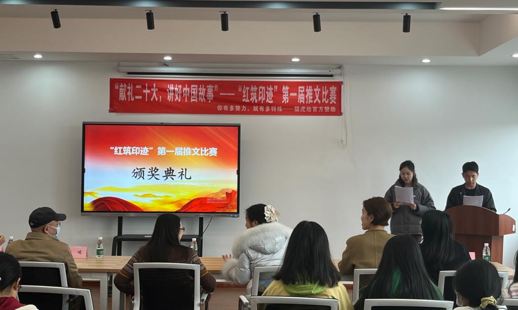 三楼举行了“献礼二十大,讲好中国故事”——“红筑印迹”第一届推文比赛颁奖仪式。