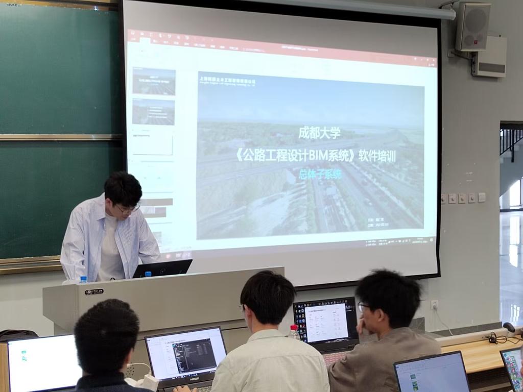 本次授课主要基于同豪全国产自主知识产权软件BIM平台,从平面选线、纵断面设计、横断面设计、构筑物设计、BIM漫游设置、成果导出等六个方面展开。专业设计师黄仁锋工程师理论结合实例给学生详细地讲解了道路勘测设计要点、布线技巧、软件操作方法。同学们结合自己的路线设计任务,紧跟老师步伐,就培训过程中涌现的各种问题,包括软硬件技术问题积极踊跃询问,兴趣高昂,自主总结自己遇到的问题及解决方法并通过QQ学习群和其他同学分享,相互交流融洽,课堂气氛浓厚。课程教师也结合授课和设计经验,引导学生主动思考,帮助学生梳理理论知识逻辑,鼓励学生创新设计,深化设计思想和理念,使得学生学习效果显著提升。