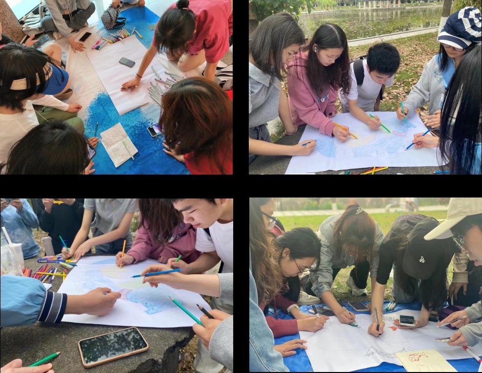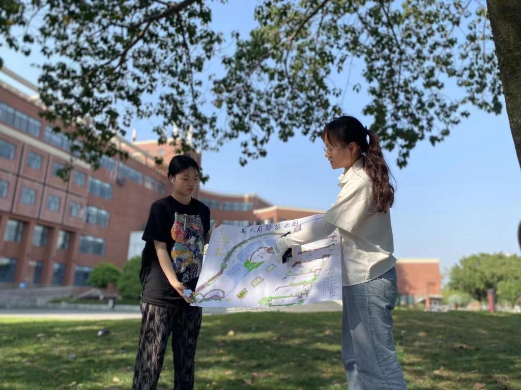 同学们在进行了充分的准备,选定了绘制区域后,带上好奇的心,在校园内进行走访,一边观察绿色景点、自然物,跟环保、可持续生活有关的设施,一边记录、收集资料。嘤鸣湖,张澜大道,乐健山……遍布着同学们的身影。将信息收集整理好,同学们以小组为单位绘制起了心目中成都大学的绿色生活地图。