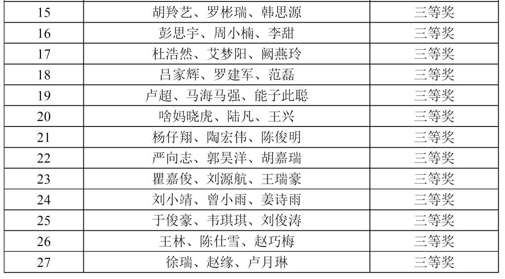 按照评分细则进行评选,最终评选出一等奖4项、二等奖9项、三等奖14项。本次比赛不仅为学生们提供了展示才华的平台,也为成都大学参加四川省结构设计竞赛选拔了优秀团队。后续将对表现优异的队伍进行专业培训,进一步提升其竞技水平。