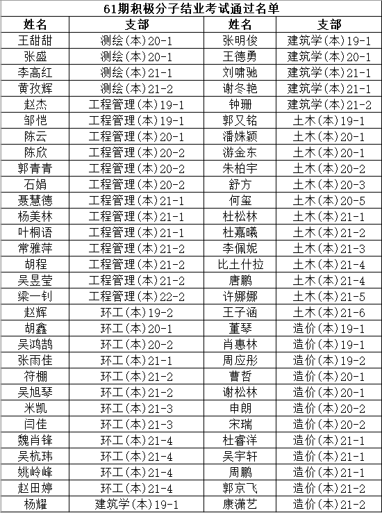 经Unibet中国 分党校培训考核,第61期入党积极分子培训班结业名单如下: