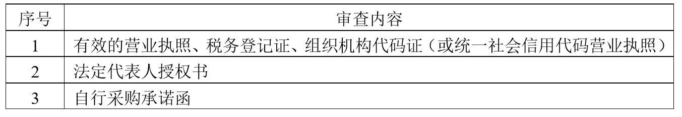投标人须通过下表每一项审查,才能进入符合性审查评审。其中任何一项不合格,则其资格审查不合格。