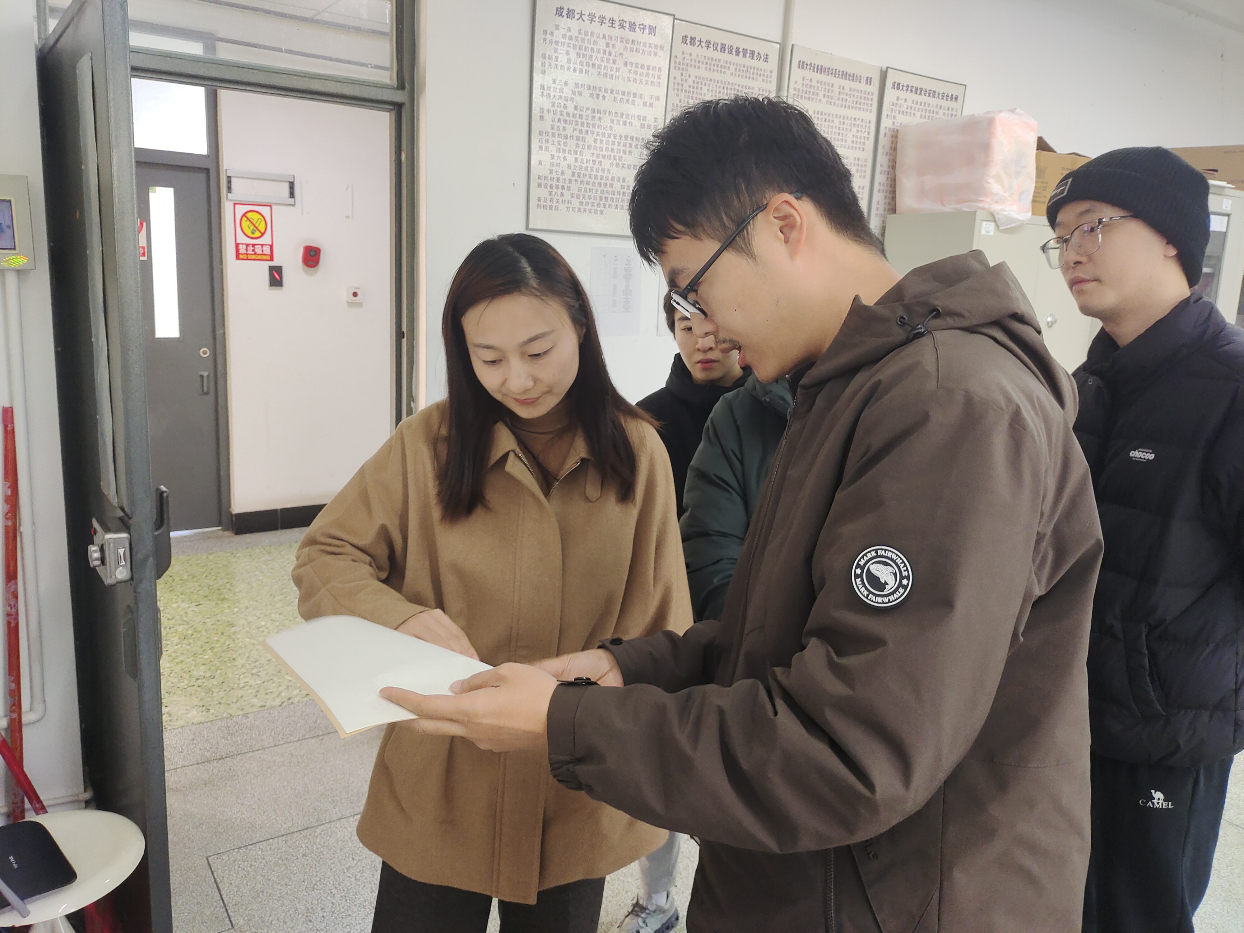 本次检查严格依据《实验室安全隐患排查条例》,覆盖基础设施、设备运行、危化品管理、消防设施四大核心领域,确保检查不留死角。此次重点检查了实验室消防设施配备、易燃易爆品存储管理、用电安全规范执行情况、危化品台账记录完整性及应急疏散通道畅通情况。在检查过程中,刘洁详细询问了实验室日常安全管理流程,现场测试了灭火器、烟雾报警器等设备的运行状态,并针对部分实验室存在的物品堆放杂乱、实验记录不规范等问题提出整改意见。刘洁强调,实验室安全是学院教学科研工作的生命线,必须以“时时放心不下”的责任感抓实抓细防火工作,要求各实验室负责人严格落实“三级(学校-学院-实验室)实验室安全准入培训”制度,提升全院师生安全意识和应急处置能力。