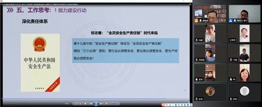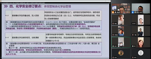 根据《教育部办公厅关于组织开展2022年高等学校实验室安全检查工作的通知》及省市教育系统的相关工作要求,切实做好实验室安全检查工作,提高实验室安全管理水平,学院实验中心全体老师于2022年4月26日上午10:00~11:30通过线上方式集中观看学习了清华大学实验室与设备管理处副处长艾德生的讲座报告,题目为《2022年高等学校实验室安全检查项目表要点》条目解读。