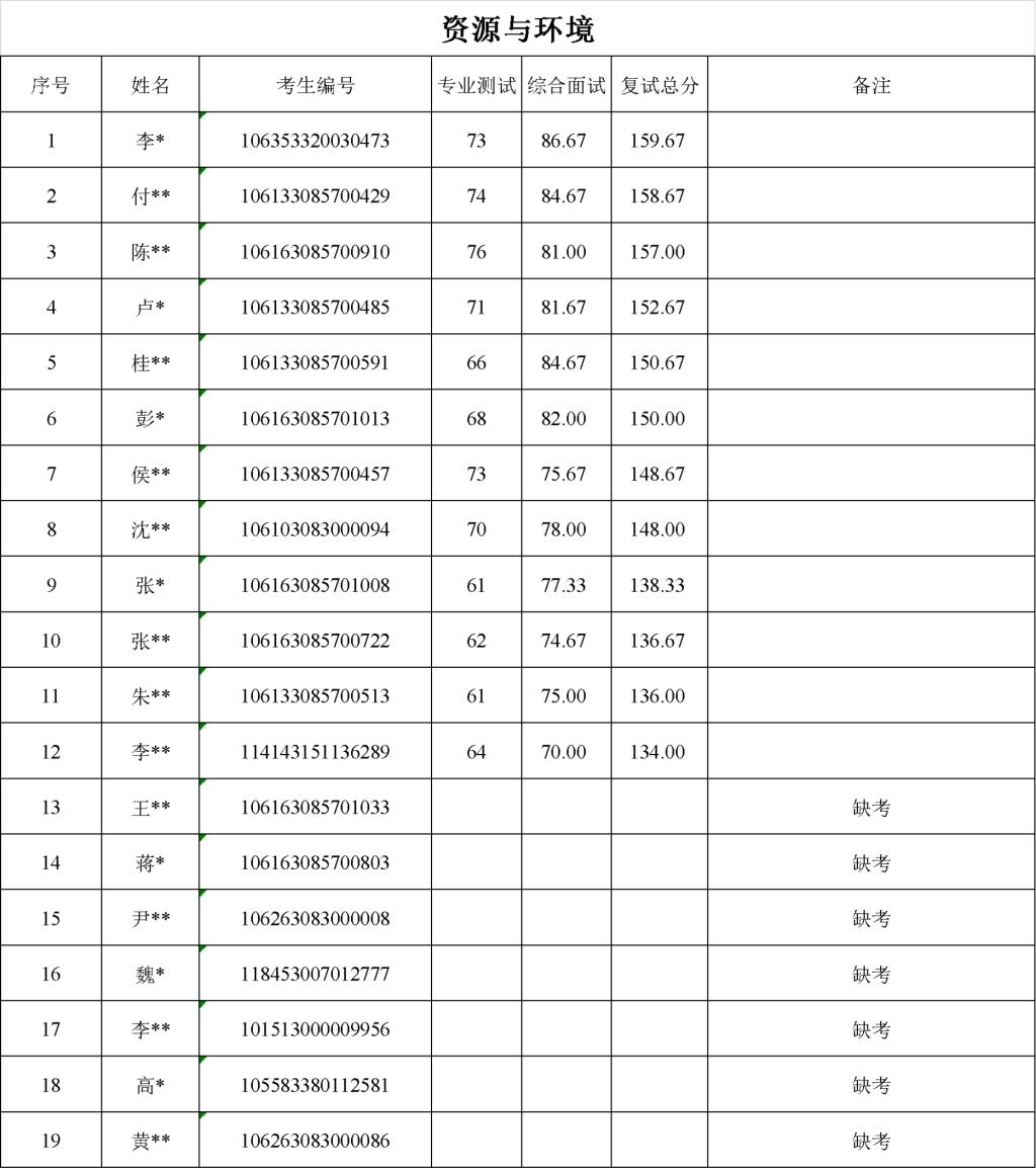 优胜客 2023年硕士研究生调剂复试工作已于2023年4月8日完成,现将复试成绩公示如下: