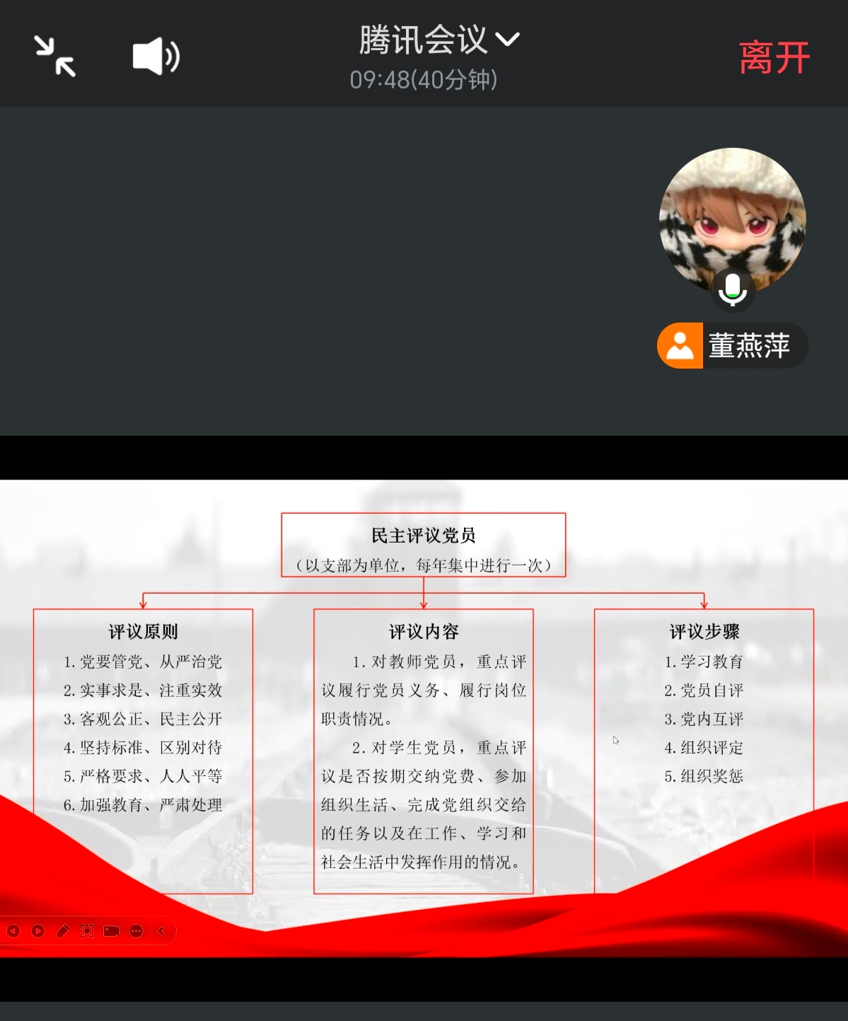 学生第二党支部于2026年1月23日在线上召开了2025年度民主评议党员会议。会议严格按照党章规定和上级党组织部署,围绕“党要管党、从严治党”原则,组织全体党员开展批评与自我批评,进行民主评议,旨在进一步加强支部自身建设,提升党员党性修养,增强党组织的凝聚力和战斗力。